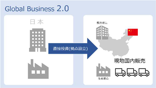 1つ前の「グローバルビジネス 2.0」では、現地の経営資源やサプライチェーンを活用してより深く現地市場に浸入する段階でした。