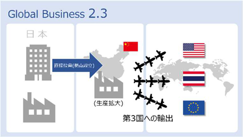 グローバルビジネスフェーズ 2.3:当該国で生産した製品の第3国への輸出